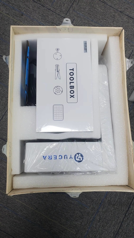 Dental 3D desktop scanner is packed in a rigid wooden box with foam protection.
