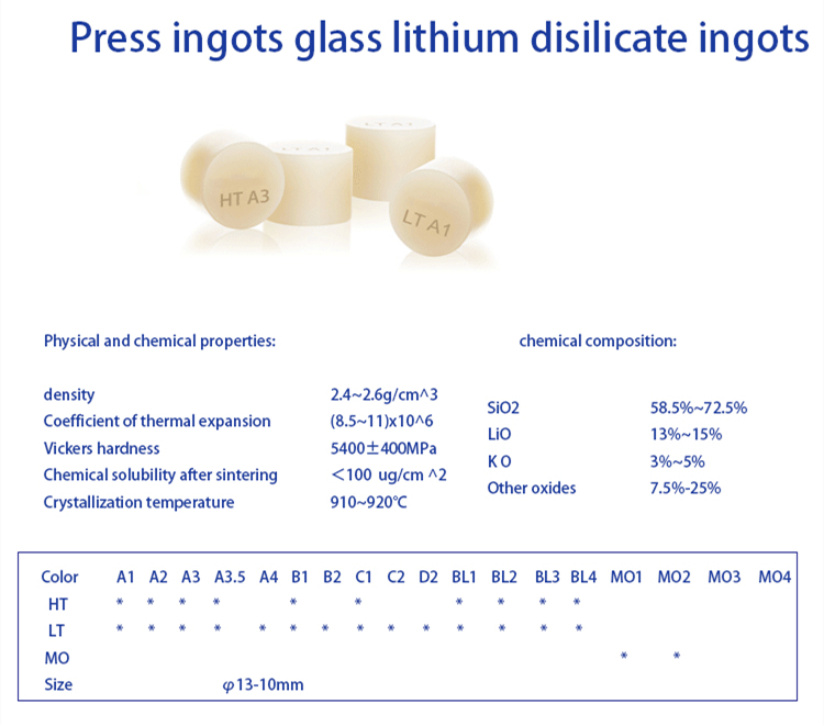 Dental Equipment material for dental lab glass ceramics lithium disilicate press ingots Dental Lithium HT/LT