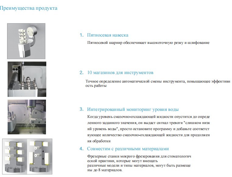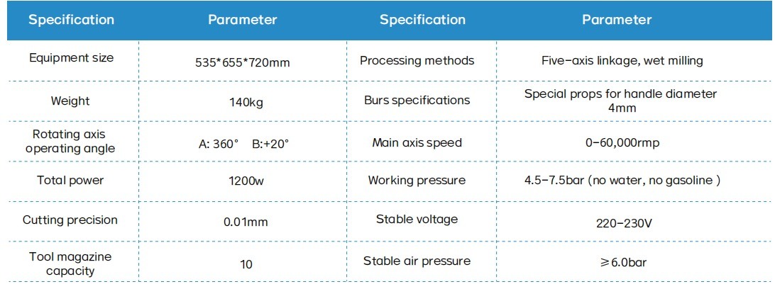 Wet milling machines for dental practices that can hold different models and types of materials,Up to 8 pieces of materials can be placed.